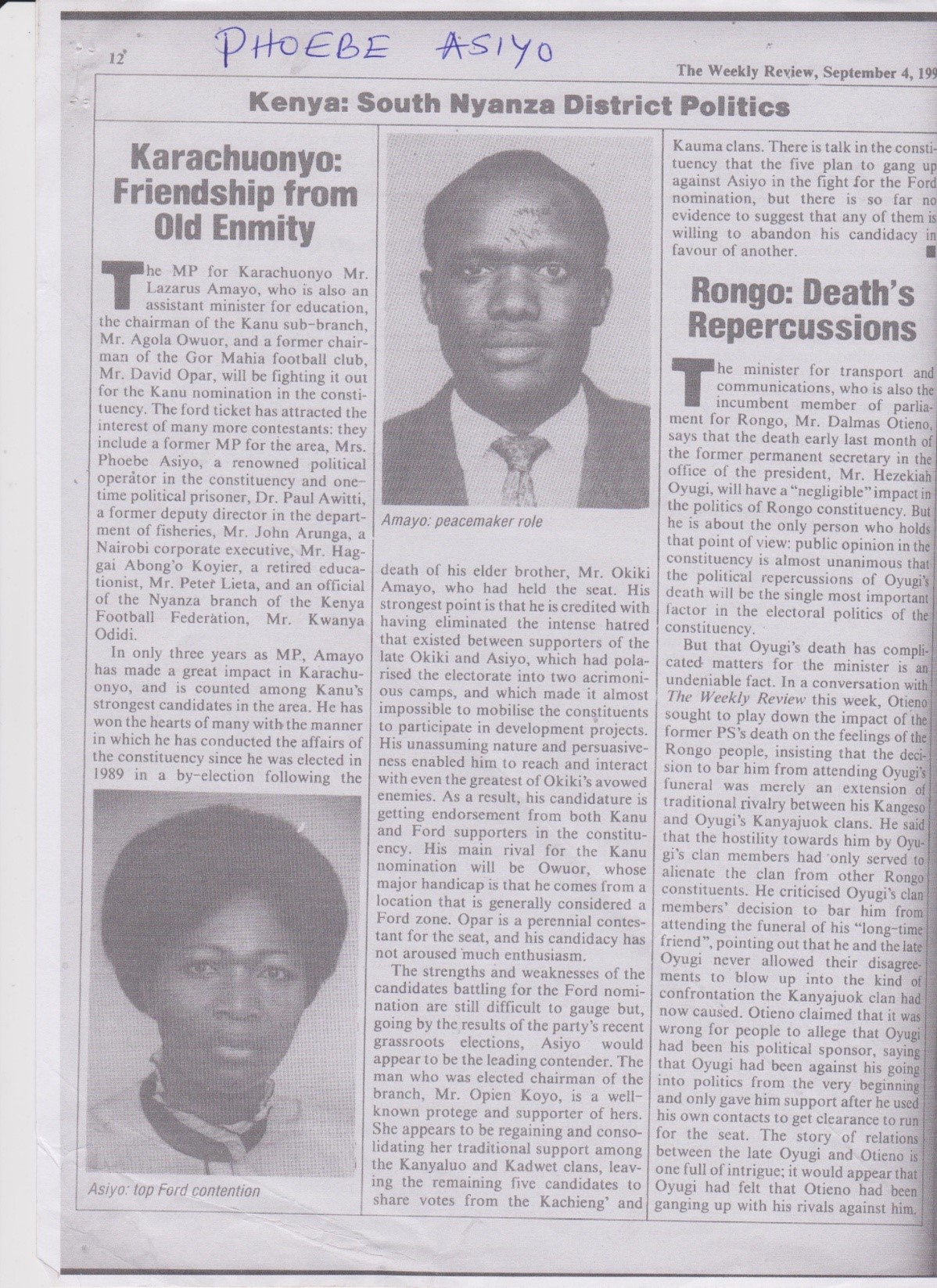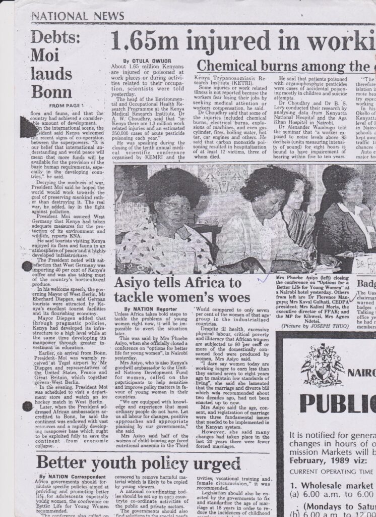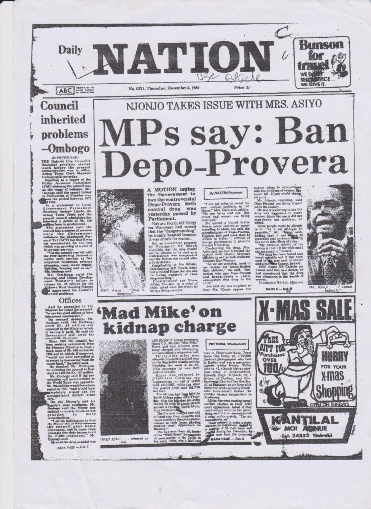 A motion on the banning of a birth control drug, Depo-Provera was being discussed in the parliament. Mrs. phoebe asiyo, who was the MP for karachuonyo made a significant contribution that contributed to this motion being passed.