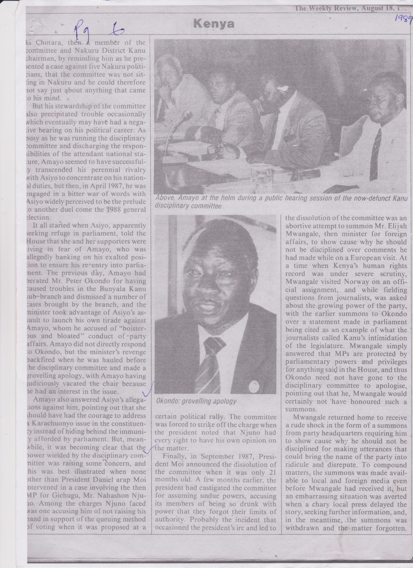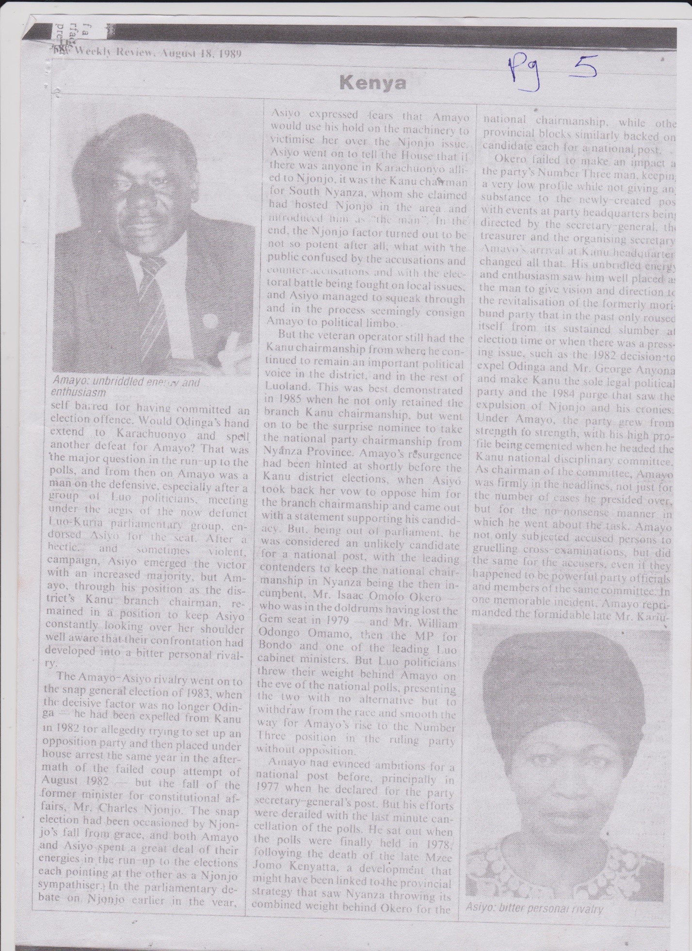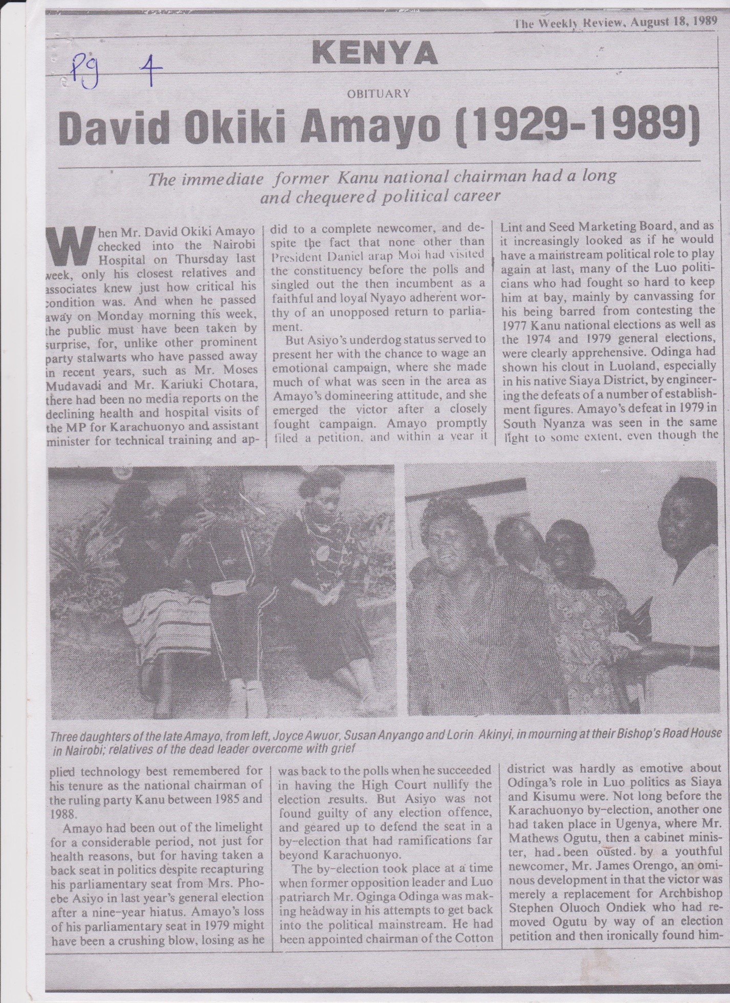 A motion on the banning of a birth control drug, Depo-Provera was being discussed in the parliament. Mrs. phoebe asiyo, who was the MP for karachuonyo made a significant contribution that contributed to this motion being passed.