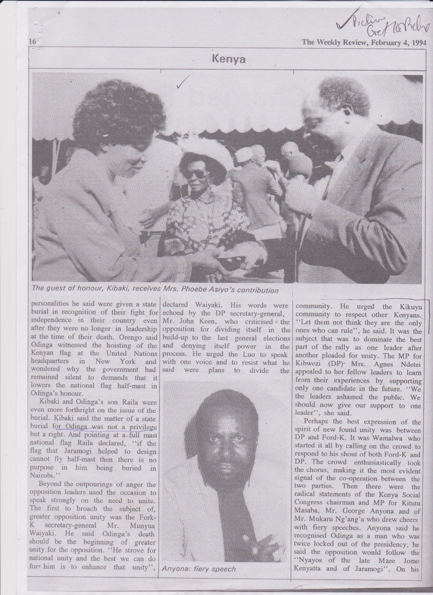 Vice chair of Children Welfare Society of Kenya, Mrs. Phoebe Asiyo, hosted a party to receive Dr. Sokata Ogeta, who was then the executive chairperson of UNICEF.